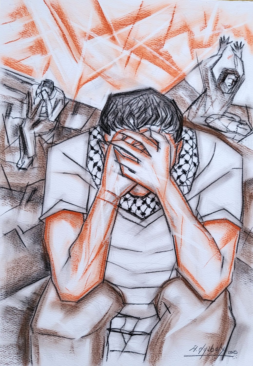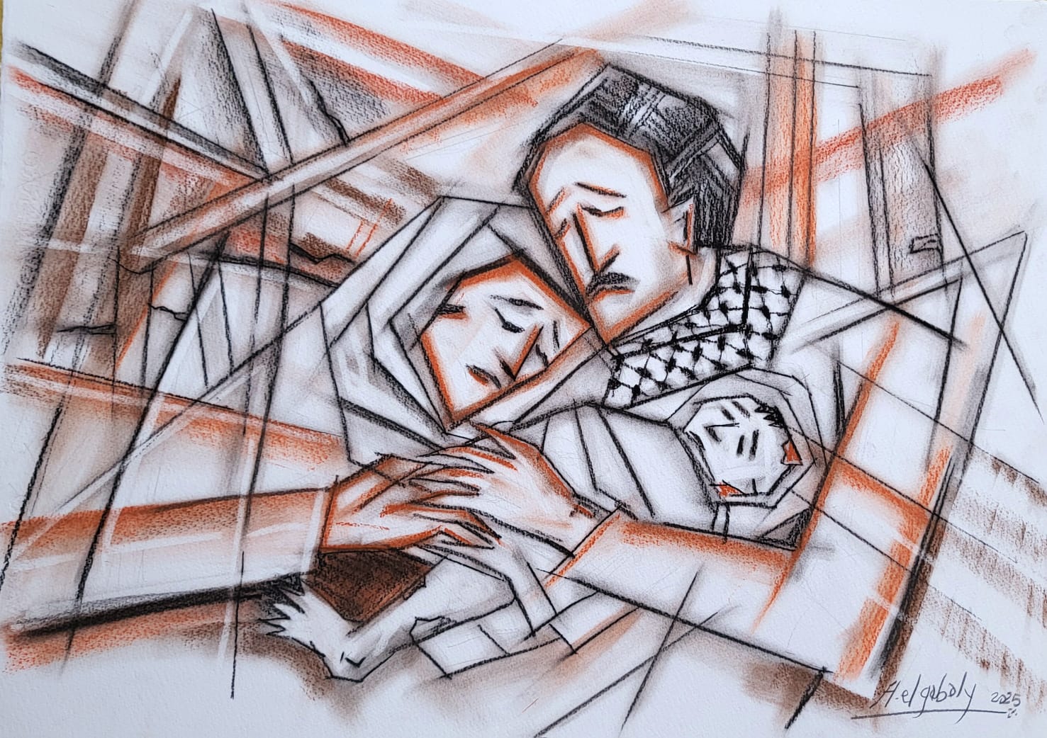 Llamamiento de socorro en Gaza, del pintor Ahmed Gabaly